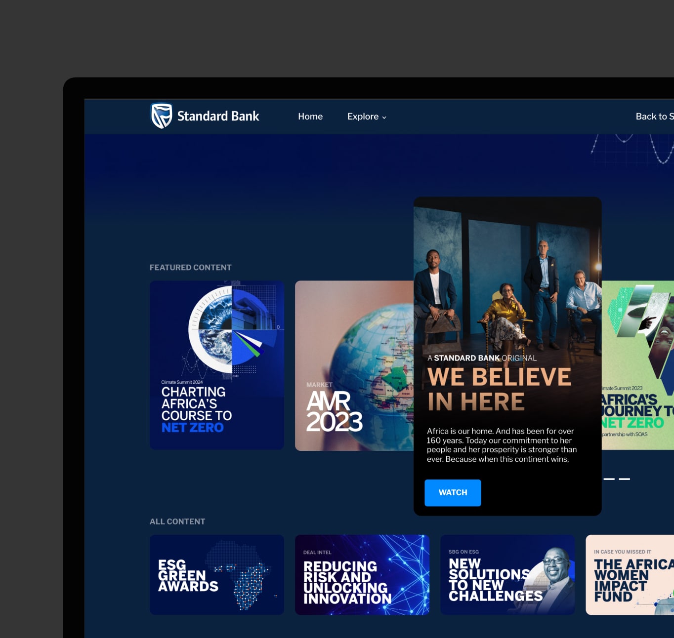 Standard Bank needed more than a website, they needed a digital space that could tell powerful stories of leadership, innovation, and Africa’s path to the future. The challenge was clear: translate complex financial and strategic content into an interface that was engaging, intuitive, and built for discovery.